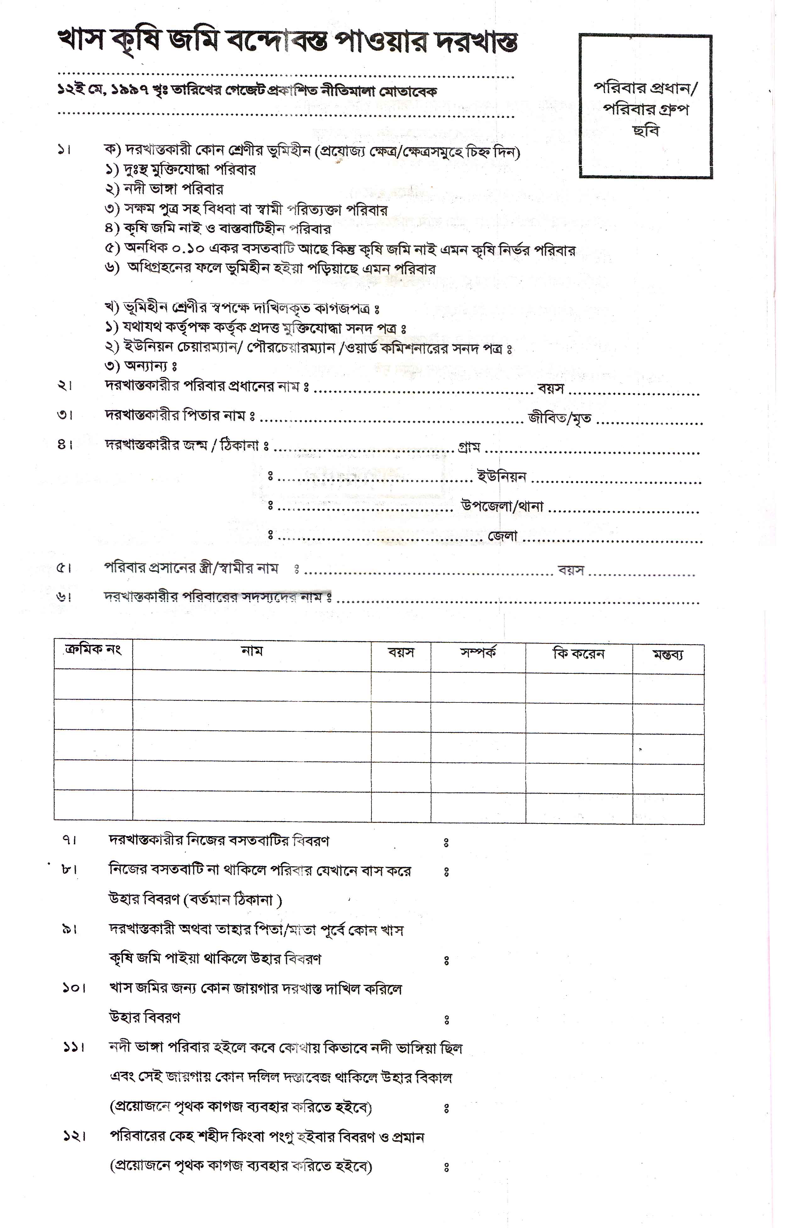 সরকারী খাস জমি বন্দোবস্তো পাওয়ার জন্য নিম্ম বর্নিত ফরম যথাযথ ভাবে পূরন পূর্বক সহকারী কমিশনার ভূমি ,রূপসা, খুলনা এর দপ্তরে জমা দেওয়ার জন্য জানানো যাচ্ছে।